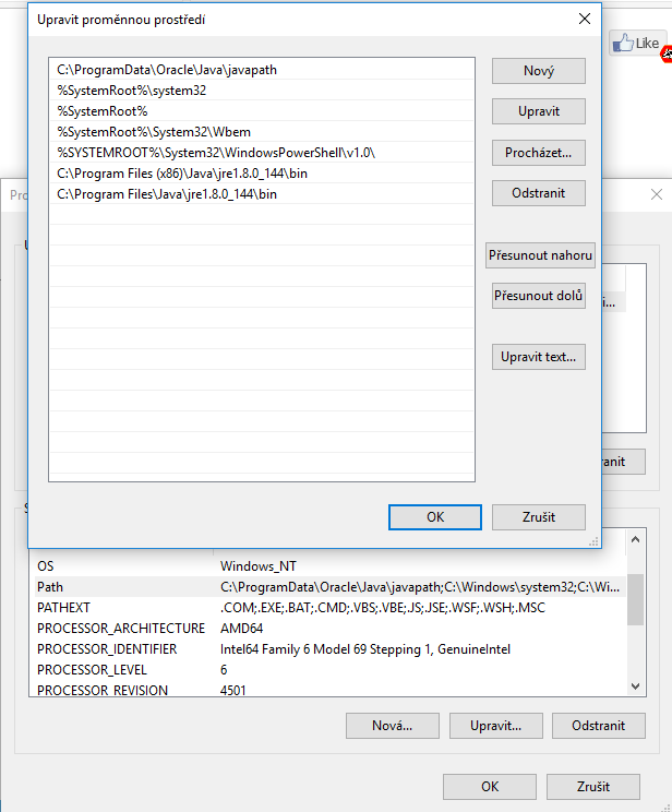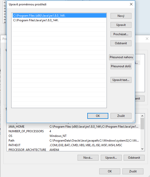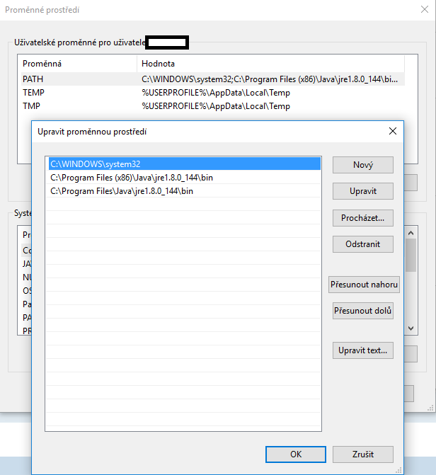 PATH (uživatel) PATH (systém) JAVA_HOME Pokud zadám cestu, jak k 32bit nebo k 64bit, pokaždé mi vyjede, že cesta je špatně.