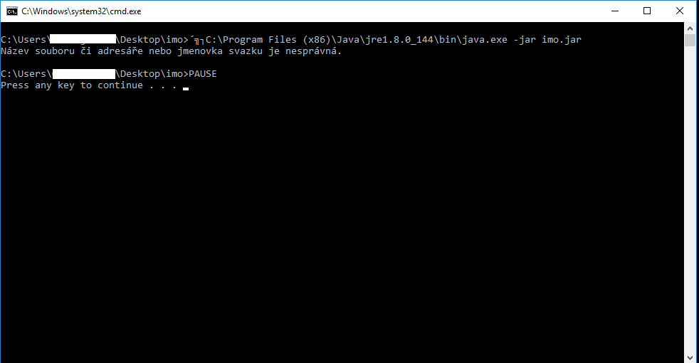 mám nainstalovanou Javu 32bit i 64bit, avšak pokud chci spustit .jar soubor přes .bat, vždy mi to vypíše, že 'Java' is not recognized as an internal or external command.