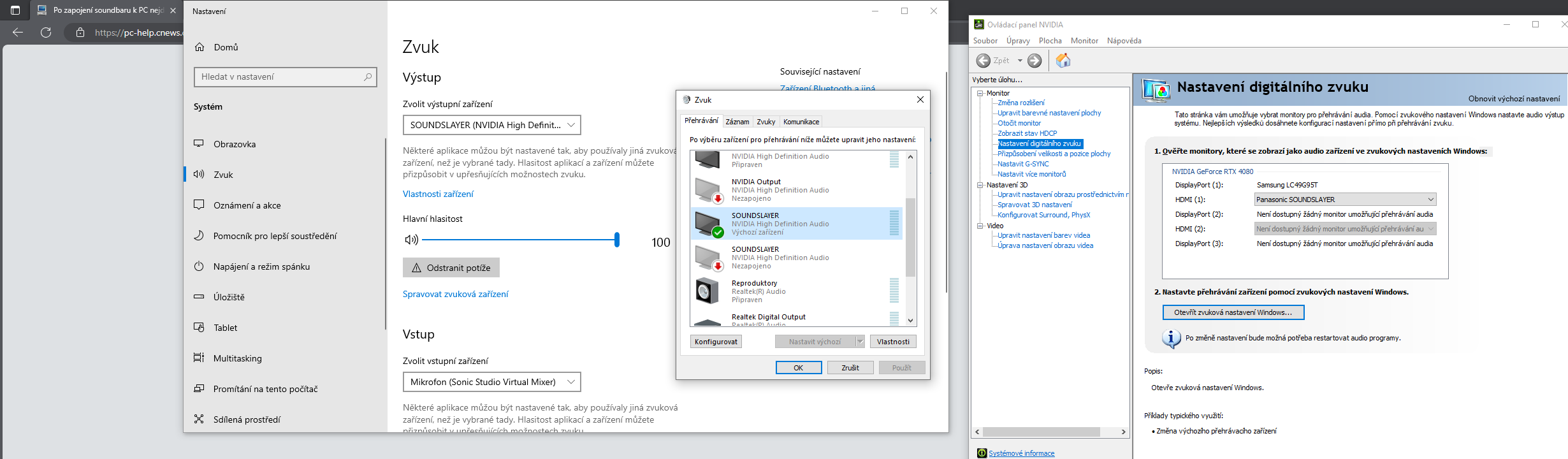 Re: Po zapojení soundbaru k PC nejde zvuk
