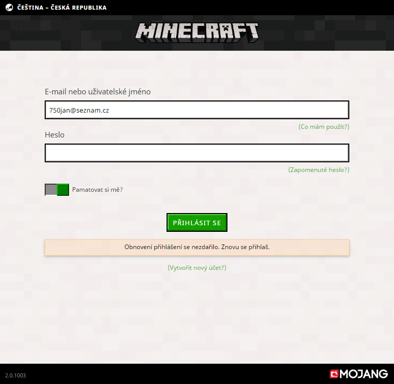 Dobry den nejde se mi prihlasit do mc i kdyz zadavam dobre udaje