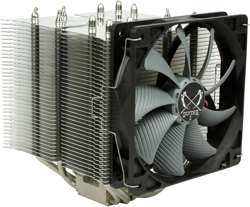 Chladič na procesor Scythe SCNJ-4000 Ninja 4, který se celkem slušně uchladí i vysoce přetaktovaný i5 6600K. Při zátěži se nepřehoupne přes 30 decibelů (měřeno z jednoho metru).
