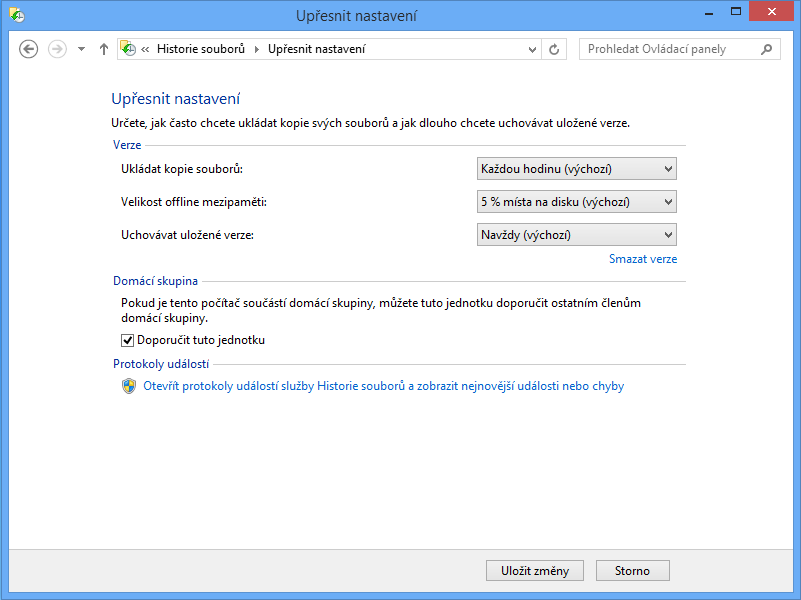 Microsoft zřejmě chtěl, aby záloha nevyčerpala uživateli veškerou kapacitu daného zařízení. Jinak se omezující možnosti nastavení Historie souborů nedají rozumně vysvětlit. Nicméně možnosti pro pokročilé uživatele, kteří vědí, co a proč chtějí změnit, by přítomné být měly. Bohužel nejsou. Totéž platí i o výběru souborů k zálohování, který takřka neexistuje.