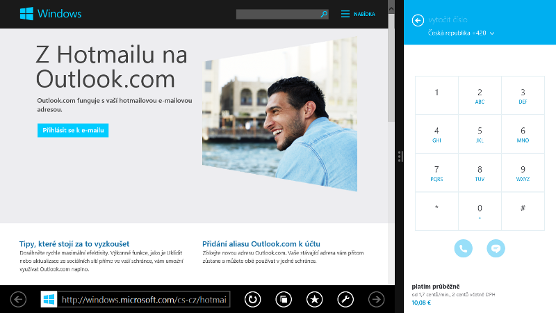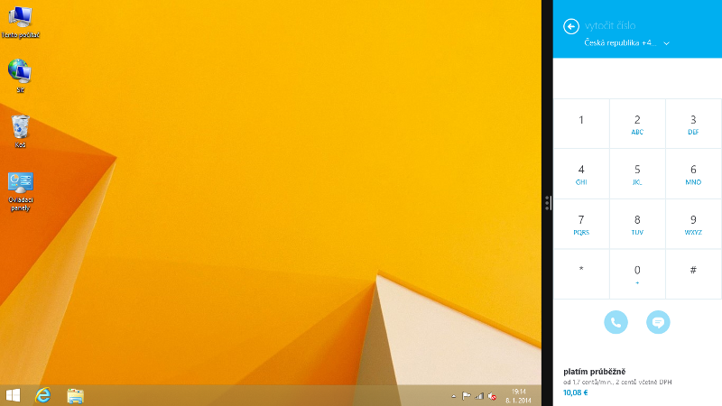 Nově též lze rozdělit displej na dvě části volitelné velikosti, přičemž v jedné se může zobrazovat klasické prostředí a ve druhé dotykové. Zejména na širokoúhlých displejích monitorů s velkou úhlopříčkou tak lze pracovat souběžně s oběma prostředími, která Windows 8.1 podporují. Možnosti využití? Fantazii se meze nekladou, ale praktické je třeba spuštění předinstalované dotykové aplikace Skype v úzkém pruhu na kraji obrazovky sousedícím s klasickým prostředím.