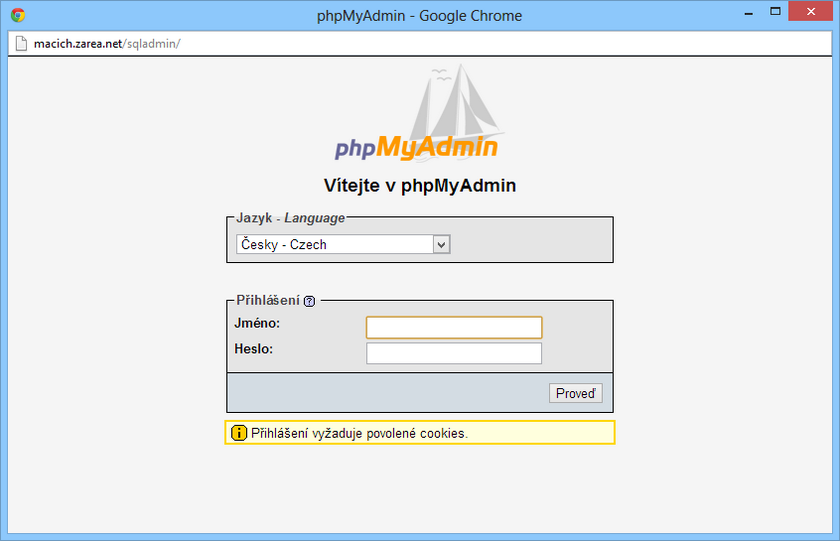 Přistupuje s k němu z webového prohlížeče. Nutné je samozřejmě znát přihlašovací jméno (bývá jím jméno databáze) a heslo. Oba údaje by opět měl webhoster sdělit. Dost možná je máte ještě někde v e-mailu, když jste si nový web zakládali, protože jste je jistě potřebovali pro instalaci některého z již několikrát jmenovaných systémů nebo jim podobného.