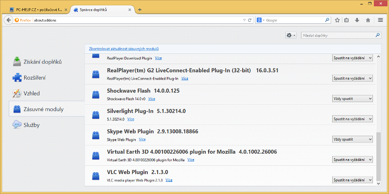 Zkrocené plug-iny se aktivují až na vyžádání uživatele