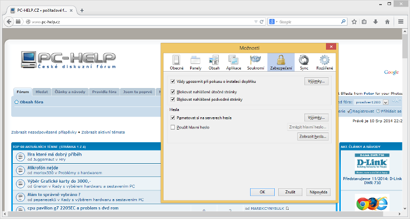 Webové prohlížeče musí nástrahám počítačového podsvětí čelit v první bojové linii. Naštěstí tomu odpovídá zavádění nových a nových bezpečnostních funkcí, ale rezervy se najdou a stále je co zlepšovat. Mozilla Firefox citelně postrádá sandbox, který by izoloval webový prohlížeč a případné hrozby od zbytku systému. Konkurenční Internet Explorer má zbrusu nový sandbox, ale bohužel jen pro uživatele Windows 8.1. Google Chrome tuto ochranu poskytuje veškerým svým uživatelům.