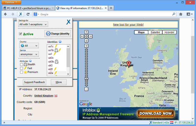 Obranou je maskování IP adresy prostřednictvím tzv. anonymizérů, kterým byl věnován minulý díl seriálu. Uživatelé Firefoxu pak mohou sáhnout po rozšíření anonymoX. Toto rozšíření zamaskuje IP adresu, ovšem bezplatný provoz je omezen na přenosovou rychlost 600 kbit/s. Pro rychlejší stahování i s maskovanou IP adresou (16 Mbit/s) s neomezovaným objemem přenášených dat a možností získat IP adresu s více zemí je třeba přejít na Premium verzi služby za 4,50 € bez daně měsíčně.