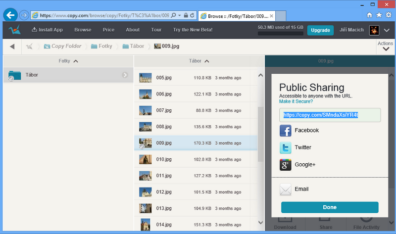 V neposlední řadě utilita Copy.com poskytuje přehled o sdílených souborech a složkách s možností kompletní správy sdílení. Spravovat sdílení prostřednictvím nativního programu je rychlejší a praktičtější než s pomocí webového rozhraní. Synchronizační utilita Copy.com je tedy opravdu nadstandardně vybavena, přestože na první pohled vypadá velmi jednoduše.