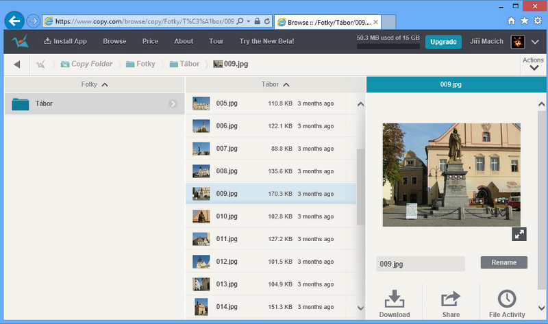 Webové rozhraní má sice jen základní funkce, ale na druhou stranu Copy.com „plnými hrstmi rozdává gigabajty úložného prostoru“. Stačí službu doporučit svým přátelům, příbuzným či kolegům a dost možná (pokud se zaregistrují) získáte zdarma prostor, za který si jiné služby nechávají platit nemalé částky. Zapomenout nelze ani na atraktivní cenovou nabídku. Sečteno a podtrženo: palec nahoru!