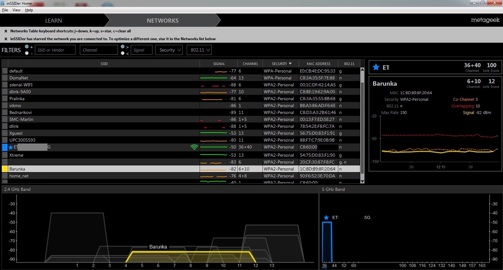 Pro analýzu, jak to vlastně ve vašem okolí vypadá můžete použít program inSSIDer. Majitelé chytrých telefonů z androidem mohou využít WiFi analyzer, který přehledně ukáže okolní WiFi sítě.