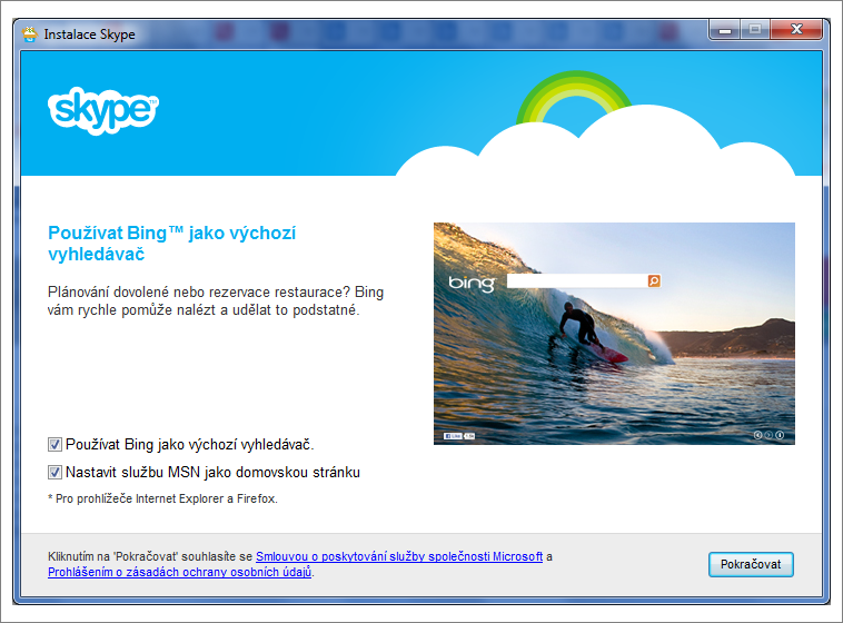 Pozor však na snahu instalačního programu nastavit ve webovém prohlížeči Bing od Microsoftu jako výchozí vyhledávač a jeho portál MSN jako domovskou stránku. Provedení obou změn je při instalaci ve výchozím stavu povoleno. Při nepozornosti během instalace tak dojde k nevyžádané změně nastavení prohlížeče, pokud ten není schopen se před takovými změnami bránit.
