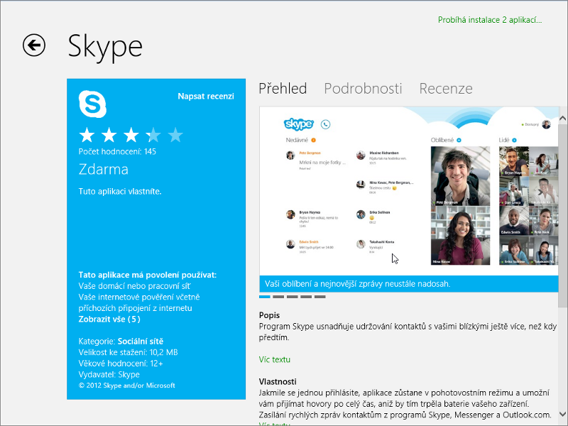 Zde se sluší upozornit, že při instalaci klienta Skype 6 zároveň automaticky dojde k odstranění programu Windows Live Messenger, pokud je na počítači nainstalován, třebaže jde o jeho nejnovější verzi z Windows Essentials 2012. To neplatí při instalaci aplikace Skype pro Modern UI. Jak případně nainstalovaný desktopový Windows Live Messenger, tak předinstalovaná aplikace Zprávy (Messaging) v Modern UI budou nadále k dispozici.