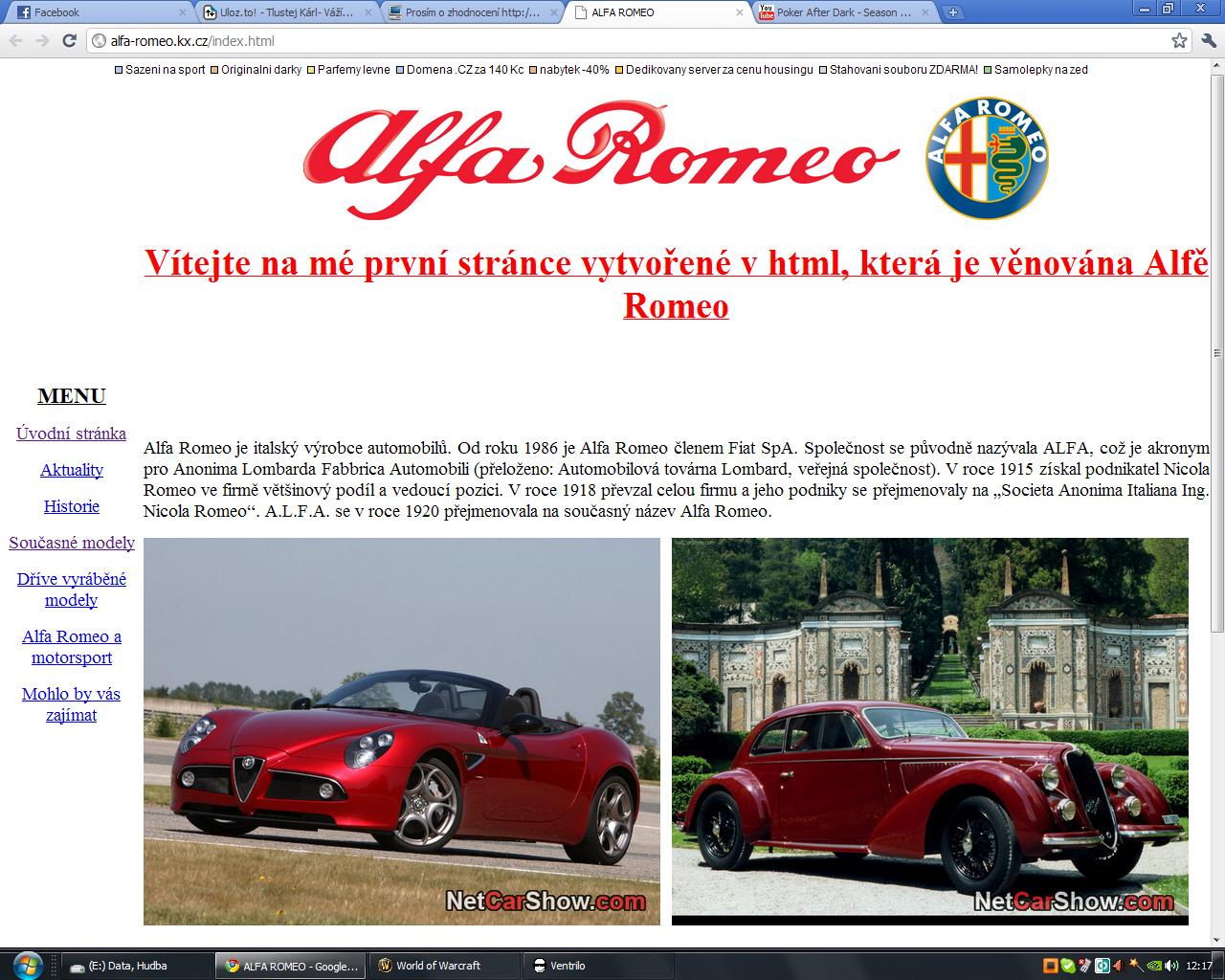 Re: Prosím o zhodnocení http://alfa-romeo.kx.cz/index.html