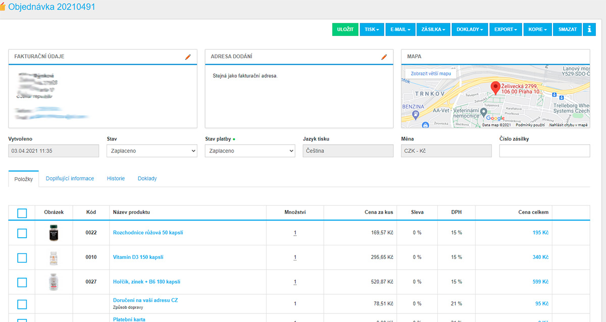 - Automatické propojení plateb z karet / banky a automatické generování dokladů, nebo odeslání k přepravci po zaplacení.
