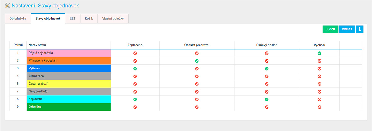 - Stavy objednávek plně editovatelné a přizpůsobitelné