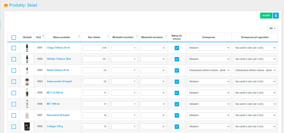 - Možnost zcela vlastních popisů o dostupnosti (skladem, není skladem, atd.) Nejste nijak omezeni