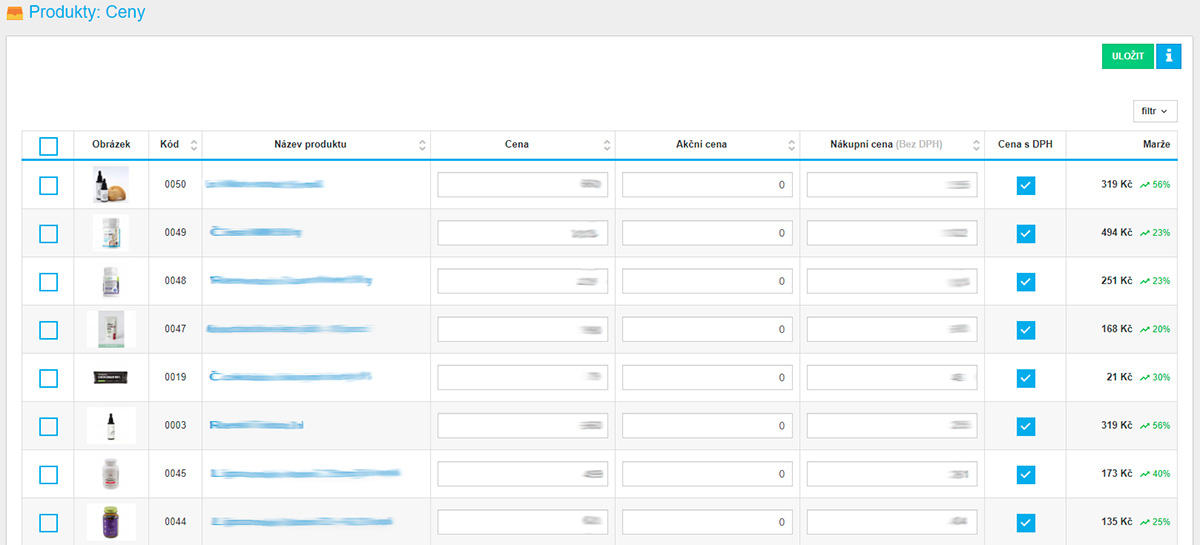 - Ceny, akční ceny a automatický výpočet marží