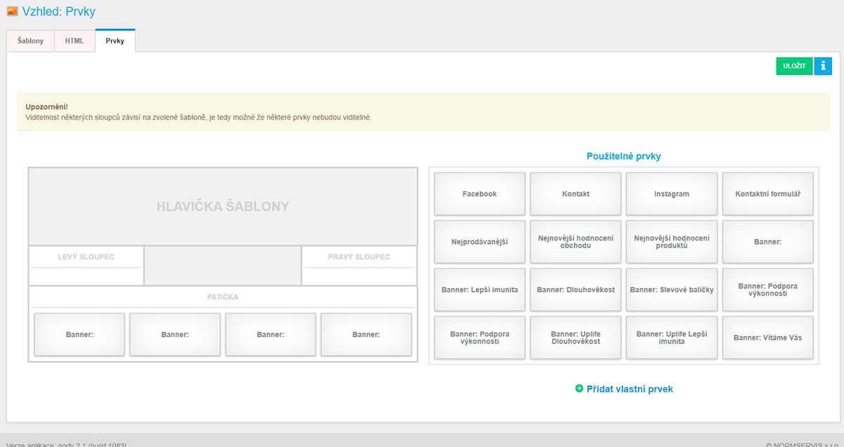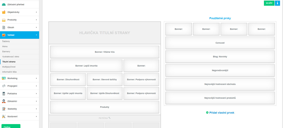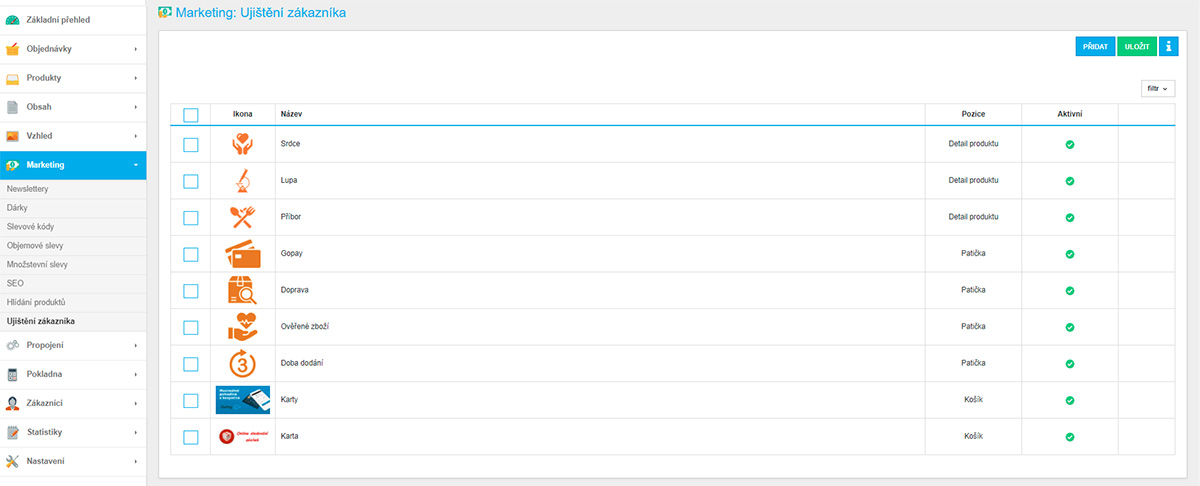 - Možnost vlastních štítků (akce, novinky, sleva atd) a jejich časové omezení