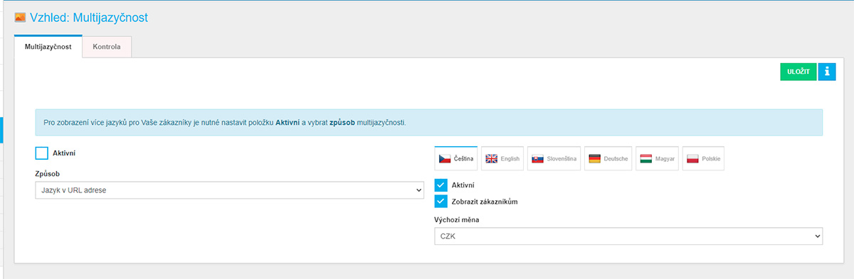 - Vše zůstává v jedné administraci, jen měníte popisky a obsah podle zvoleného jazyka