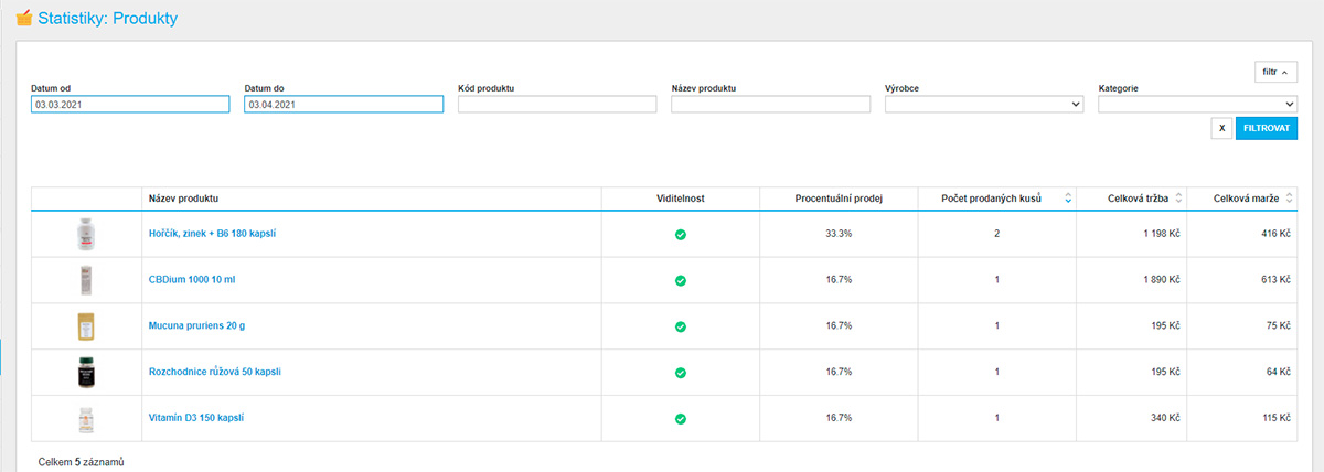 - Statistiky prodejů jednotlivých položek, statistiky návštěvnosti, klíčových slov, atd.