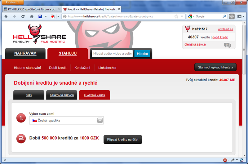 Např. částka za kredit na hellshare je sice směšná, ale přesněji směšně vysoká. A důvodů pro zaplacení si premium účtu na uloz.to moc není, neboť lze stahovat sice jen 300kB/s, ale limit je na soubor - lze tedy stahovat klidně dvacet souborů plnou rychlostí vašeho internetového připojení.