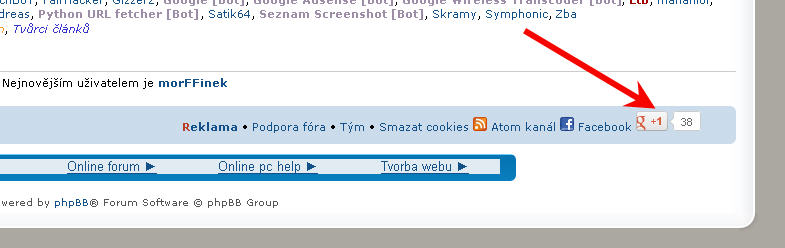 ...a před pár dny pak i patičku webu, kde nyní přibylo tlačítko pro snadné udělení +1 právě našemu fóru...