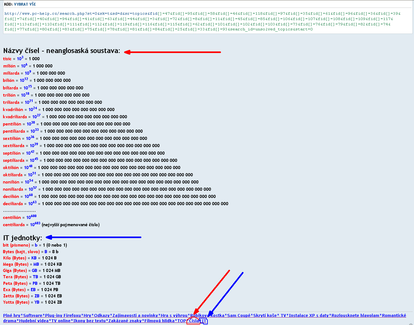Přidal jsem do odkazu v mém podpisu (klikněte): mě známé názvy čísel a IT jednotky, třeba se vám to bude občas hodit ...