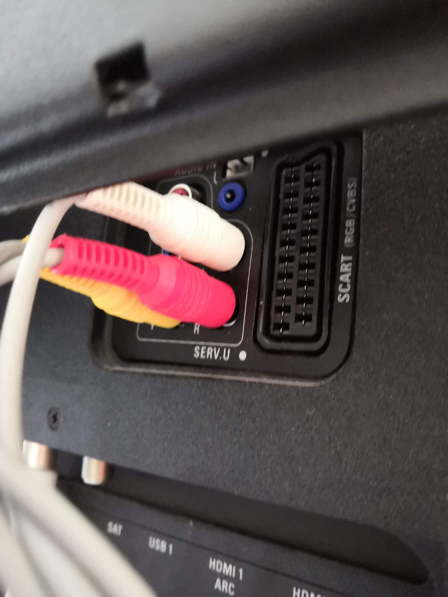 Budto je treba najit zluty konektor na TV nebo pouzit redukci na SCART.