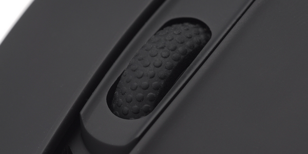 Kolečko podporuje pouze vertikální rolování, nikoliv horizontální (naklápění do stran). Zaujme však jeho pogumovaný protiskluzový povrch se vzorkem. Kolečko neklouže ani pod zpoceným prstem v zápalu hry. Díky vzorku se pak prst dostává do intenzivnějšího fyzického kontaktu s kolečkem, takže jeho ovládání je přesnější.