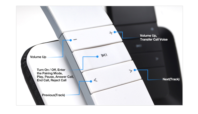 Na pravé mušli je trojice ovládacích tlačítek, přičemž dvě fungují jako kolébky, takže jde vlastně o pět tlačítek. Při poslechu hudby zmíněné kolébky slouží k regulaci hlasitosti a přeskakování mezi skladbami. Zbylé klasické tlačítko pak funguje pro pozastavení přehrávání nebo spuštění přehrávání hudby v závislosti na tom, jestli zrovna hudba hraje či nikoliv. Stejná tlačítka slouží také k volání, kdy se samozřejmě jejich funkce mění.