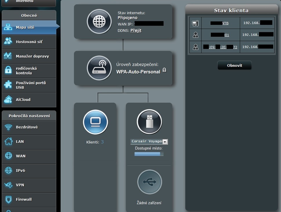 A samozřejmě nechybí ani přehledná mapa sítě a připojených zařízení: