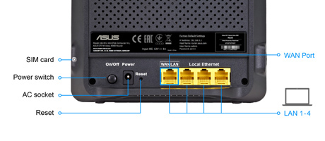 Router je v černé barvě. Přední straně vévodí velká lesklá plocha, po pravé straně jsou indikační LED diody. Indikace LTE je řešena jako stupňovitý bargraf zelené barvy, ostatní LED jsou také zelené. Pravá strana routeru obsahuje slot pro vložení SIM karty, na levé pak najdete tlačítko WPS. Vzadu je vypínač a tlačítko reset. Dále jsou zde čtyři LAN porty, z nichž první lze použít jako WAN pro případ, že byste chtěli tento router použít jako obyčejný router a konektor pro připojení napájení. Dvě neodnímatelné externí antény (3 dBi) jsou určeny pro příjem LTE. WiFi si vystačí se třemi integrovanými anténami (2 dBi).