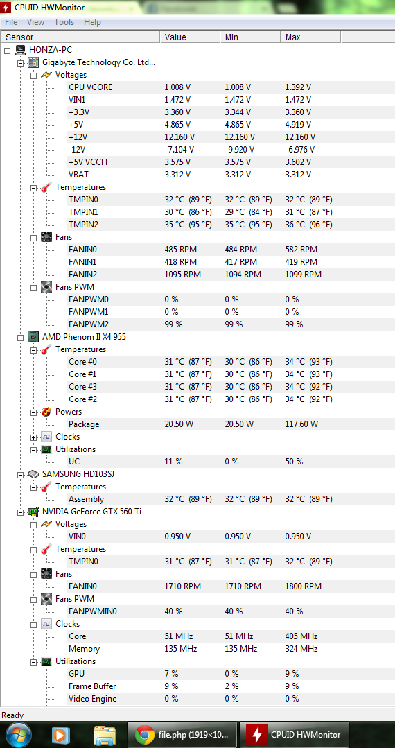 AMD PhenomII X4 955 BE 3,8 GHz / Gigabyte GA-880GA-UD3H / MSI N560GTX-Ti Twin Frozr II/OC / Kingston HyperX blu 4GB (kit 2x 2GB) 1600MHz CL9 / Gelid Solution Tranquillo / Samsung SpinPoint F3 3.5" 1TB / Seasonic S12II-620 (SS-620GB F3) 80Plus Bronze / Cooler Master HAF 922 W