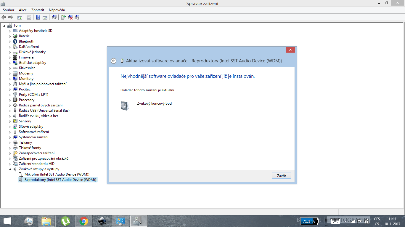 adavyp píše:Tak v tom archivu ve složce Drivers je složka Audio. Jen tu extrahuj na plochu s kompletním obsahem a potom ve správci zařízení klikni pravým na reproduktory Intel SST blabla a vyber aktualizovat ovladač, a tam se tě to zeptá na instalaci v počítači tak to zvol a naveď to na tu extrahovanou složku. Dej vědět jestli se to povedlo.