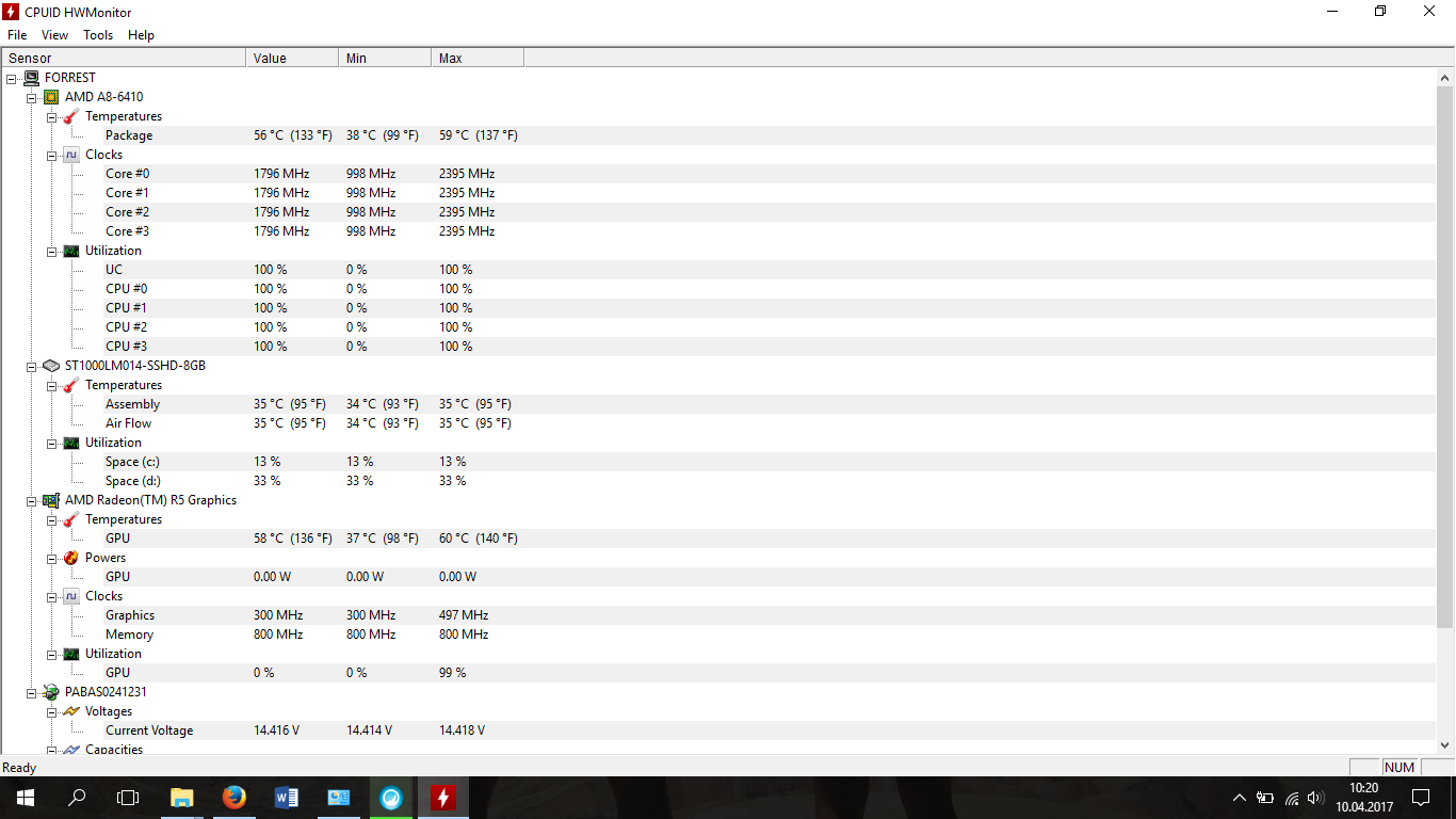 Mám noťas, amd A8 6410 apu, AMD r5 gpu (tuším M2xx), 4gb ram, nic netaktuji (co bych také s touto bramborou taktoval