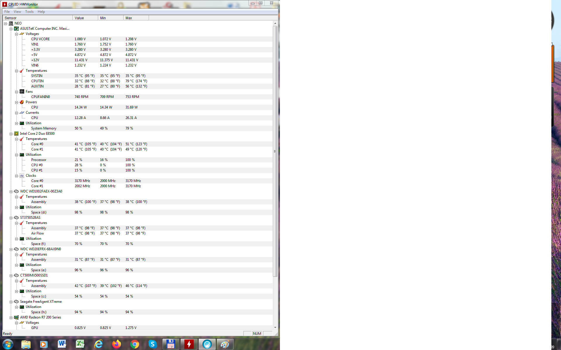 CPU: Intel Core 2 Duo E8500 (CPU jelo několik let přetaktované z 3,16GHz na cca 4GHz)