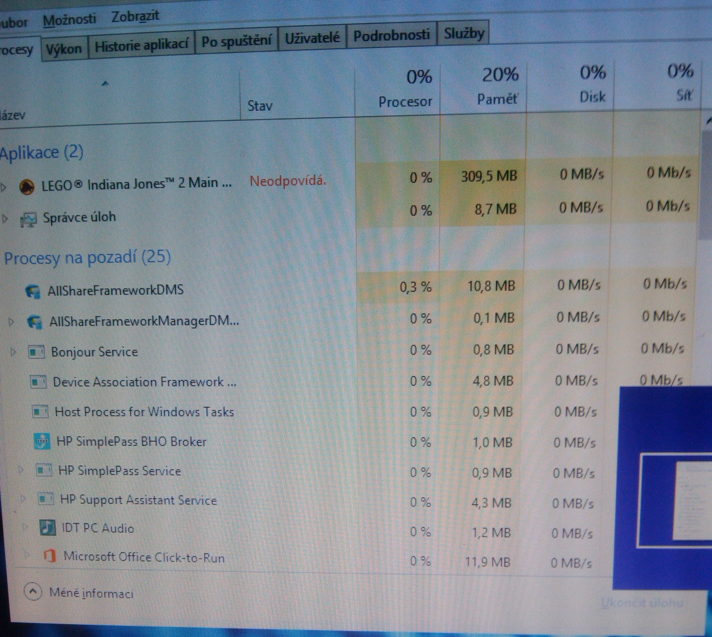 Pak jsem se pokusil udělat screen shot Foťákem v mobilu protože byl PC zakouslý a nebyla vidět myš (