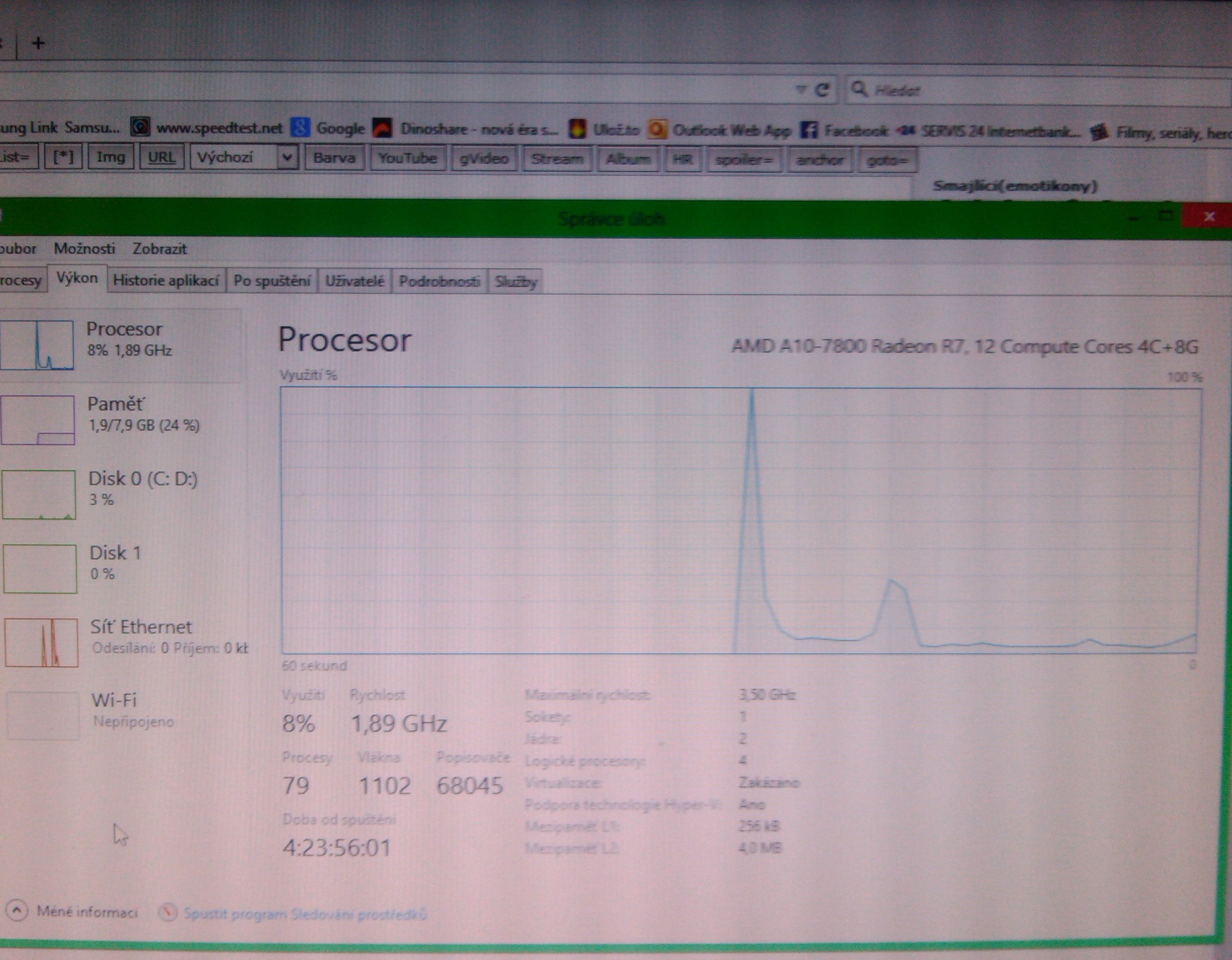 Hoď sem screen shot Správce úloh, záložky Výkon. Počítač před tím musí nějakou dobu běžet.