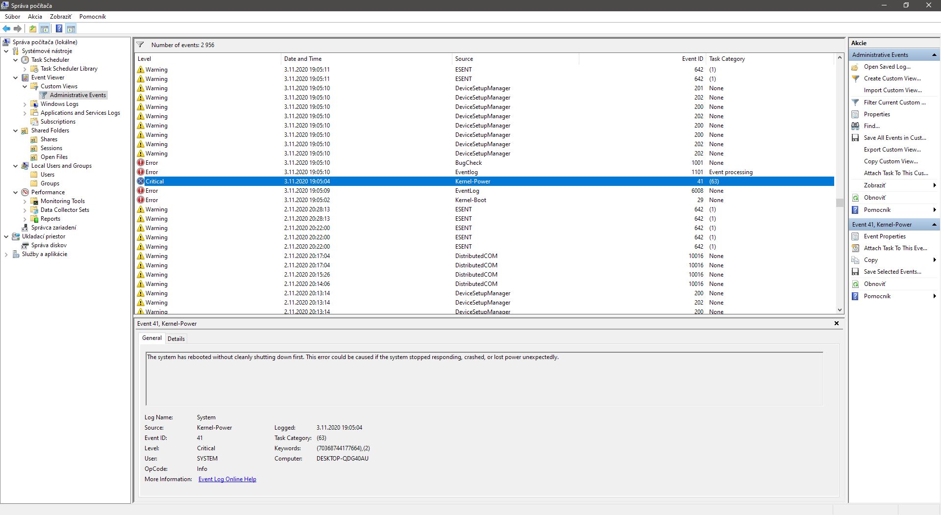 jOhne, máš to tam rozkliknuté ... Custom Views, pod tím Admnistrative Events ... na to klikni, vyjedou ti všechny chyby ...