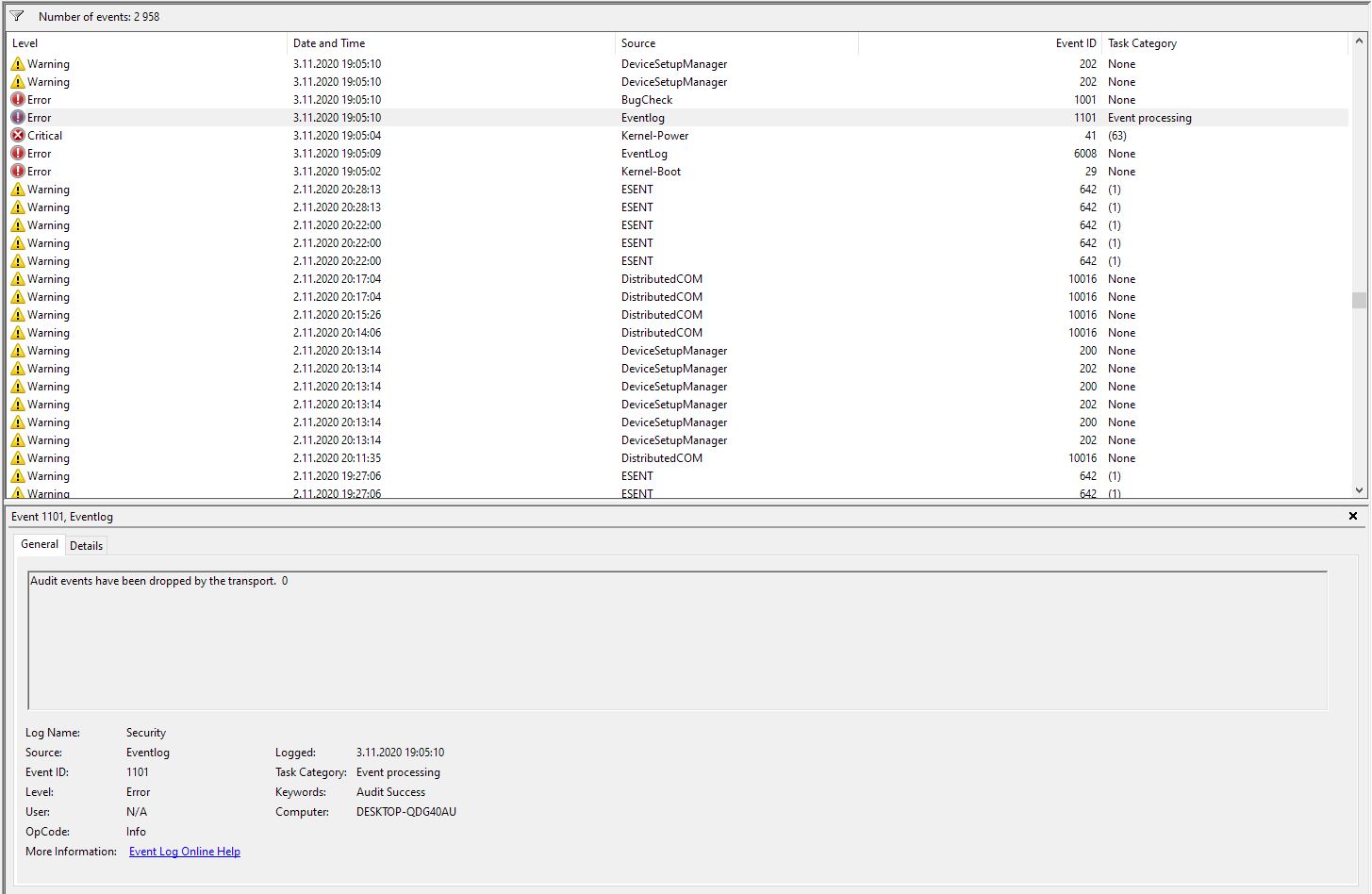 no já nevím, nevidím ty errory pod a nad tím ... pravděpodobně to souvisí s hibernací, nebo s vypínáním počítače v režimu "fast boot", některý hardware, ovladače mají s tím problém ... ale pokud to udělalo jednou, to mohlo být cokoliv, včetně "šachů" windows ... zatím bych to neřešil ...