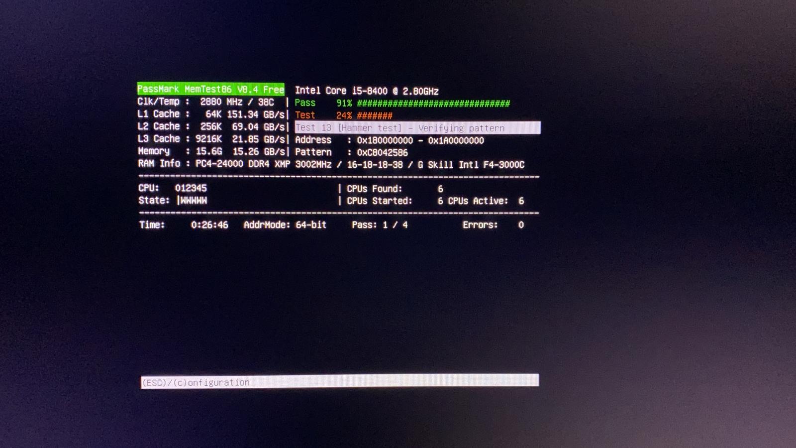 tak Memory test vypadá ok bez chyb