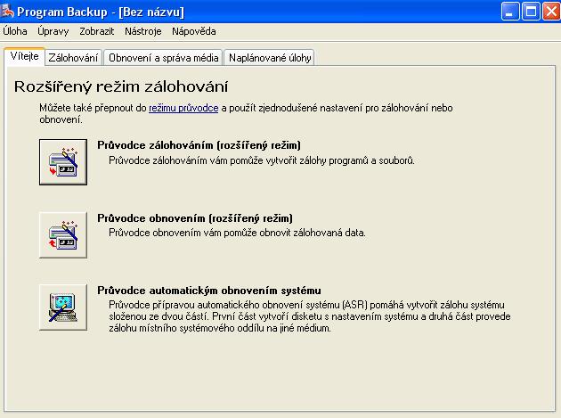Start - Všechny programy - Příslušenství - Systémové nástroje - Zálohování.