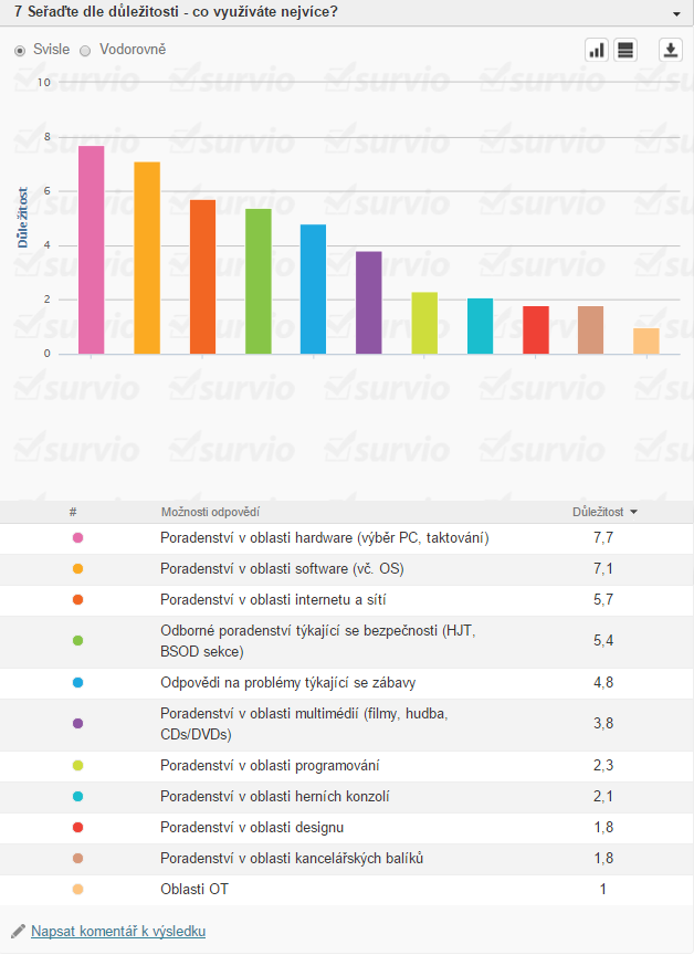 Díky moc Clorkymu za vymyšlení a zorganizování této pohodové ankety, zároveň díky všem, co se zapojili a poctivě vyplnili. Je moc fajn vidět, že "strategický" přechod na v3.1 je vnímán z většiny pozitivně. Připomínky jsem si poctivě pročetl, pokusím se alespoň některým z nich vyhovět.