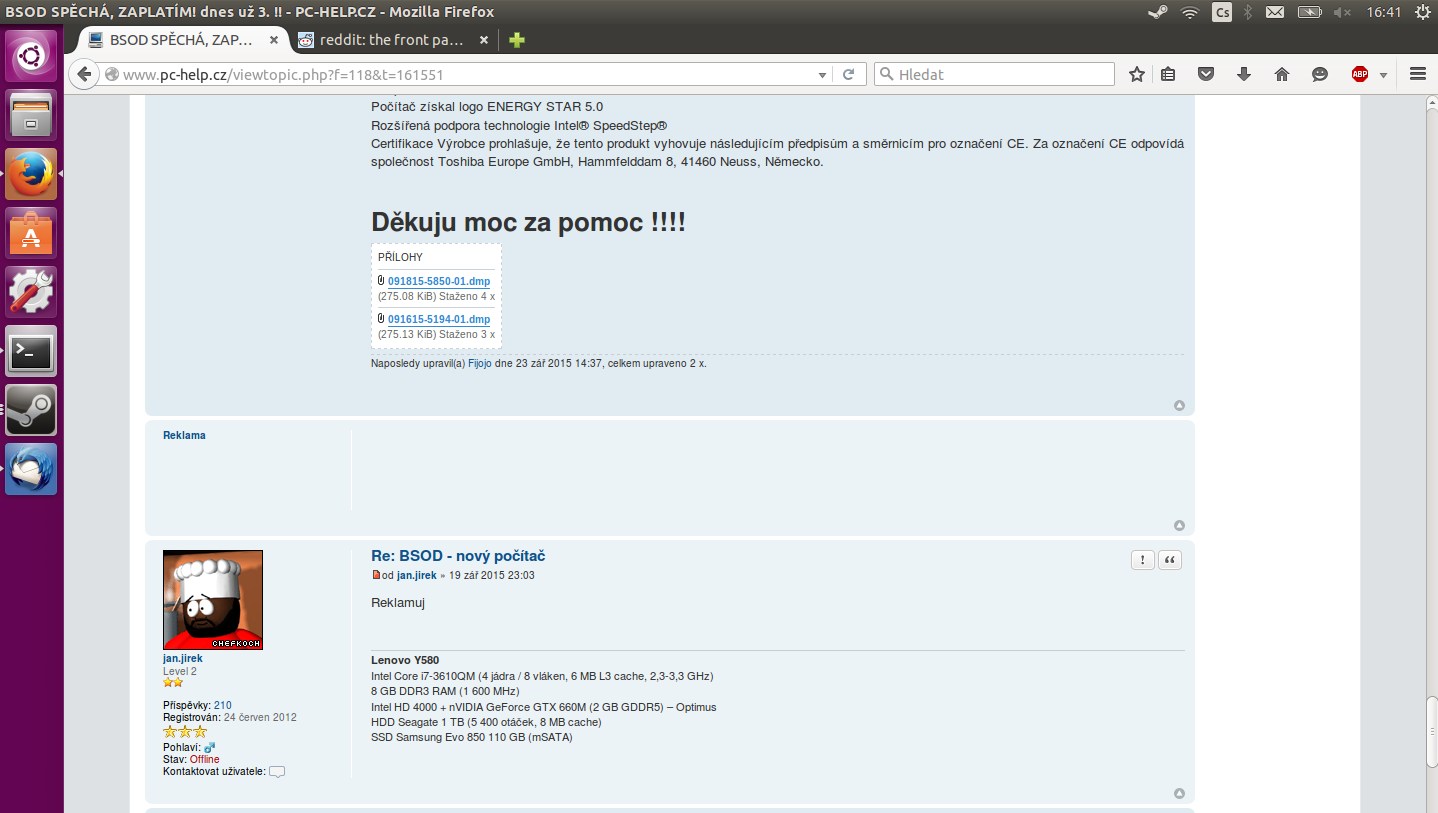 podle mého názoru by se v sekci BSOD měla zavést přísnější pravidla tak jako tomu je v HijackThis sekci.. dneska jsem náhodně projížděl top příspěvky a kliknul na toto téma a co nevidím... Podle mě zbytečně zmateční a akorát vyděsí tazatele.. V sekci by se neměl vyjadřovat nikdo neznalý problematice.. Navíc v BSOD teamu je dost lidí, takže určitě někdo poradí a není třeba zásah "z venčí"