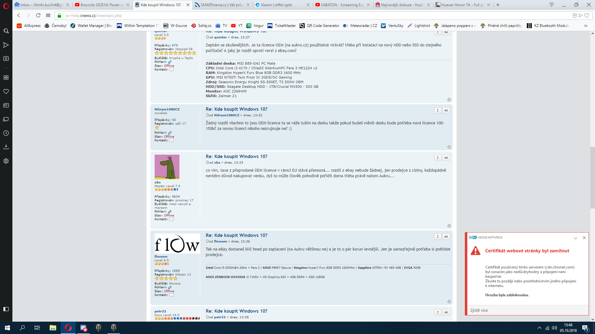 Díky za zprávu...ale týká se to opravdu PC-HELPu? Myslím tím, když kouknu na tvůj screenshot, je u URL zelený zámek..tzn. mělo by být vše v pořádku. Když kouknu na detail certifikátu, je tam platnost 1.8.2018 - 30.10.2018.