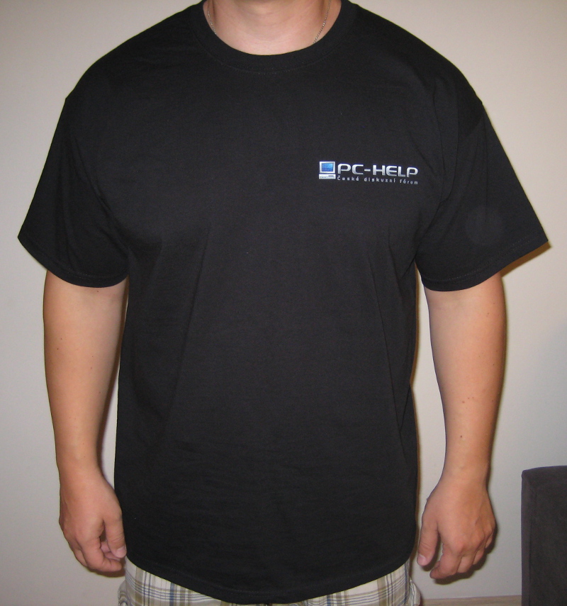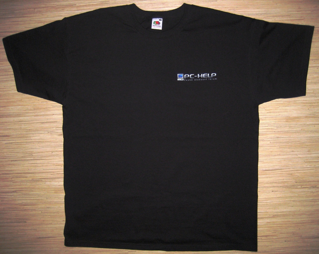 Vzorky č.2 vyzvednuty, černé triko vypadá opravdu dobře, připojuji fotky. Klasické triko máme myslím vyladěné - v nabídce bude tedy bílé a černé s možností volby potisku pouze vepředu nebo vepředu a vzadu. Triko s límečkem prozatím dávám k ledu - vzorek mě příliš nepřesvědčil o tom, že je triko s límečkem vhodné pro kombinaci s potiskem. Možná tak s výšivkou, ale to je trochu hudba budoucnosti :-)