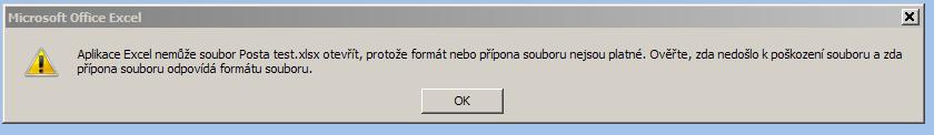 Pokud je k příspěvku připojen excelovský soubor ve formátu xls, spustí se po kliknutí na odkaz a volbě Otevřít soubor prázdné okno EXCELu a v něm tato hláška:Když při otevírání zvolím Uložit, uloží se soubor s příponou xlsx a pokus o jeho otevření skončí stejnou hláškou. Musím napřed příponu uloženého souboru změnit zpět na xls a pak teprve se bez problému otevře. Mám Ofiice 2007.