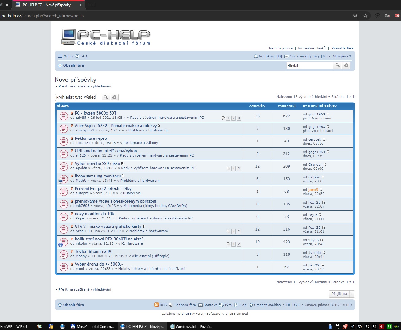 klikni si na "obsah fóra", ne na nové ... asi není víc nových než co tam máš zobrazeno