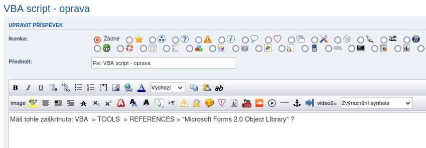 Vložil jsem prostý text: "Microsoft Forms 2.0 Object LIbrary" a forum z toho udělá hypertextvoý odkaz. Proč?