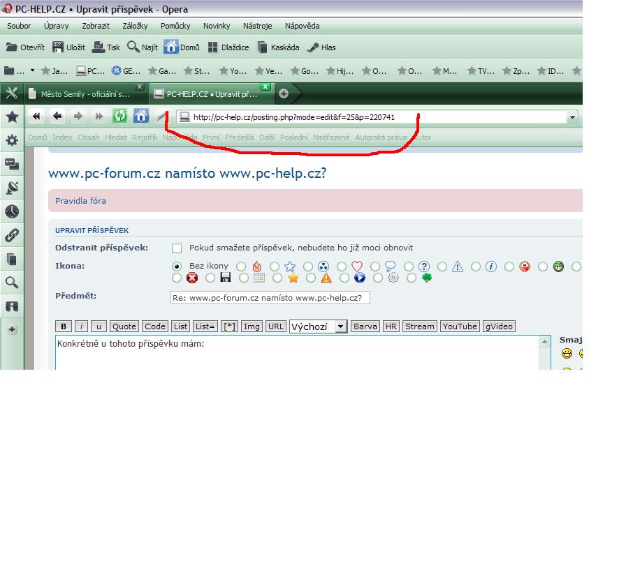 Přišel mi odkaz na nový příspěvek, ale nevedl na www.pc-help.cz/, nýbrž na www.pc-forum.cz/.